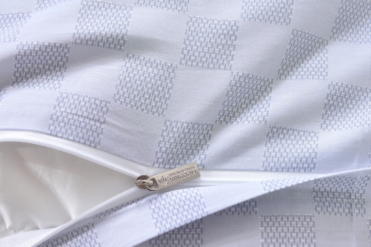 Брендированная молния на наволочках и пододеяльнике. Пододеяльник декорирован "ушками" 8см, наволочки декорированы "ушками" 5см.