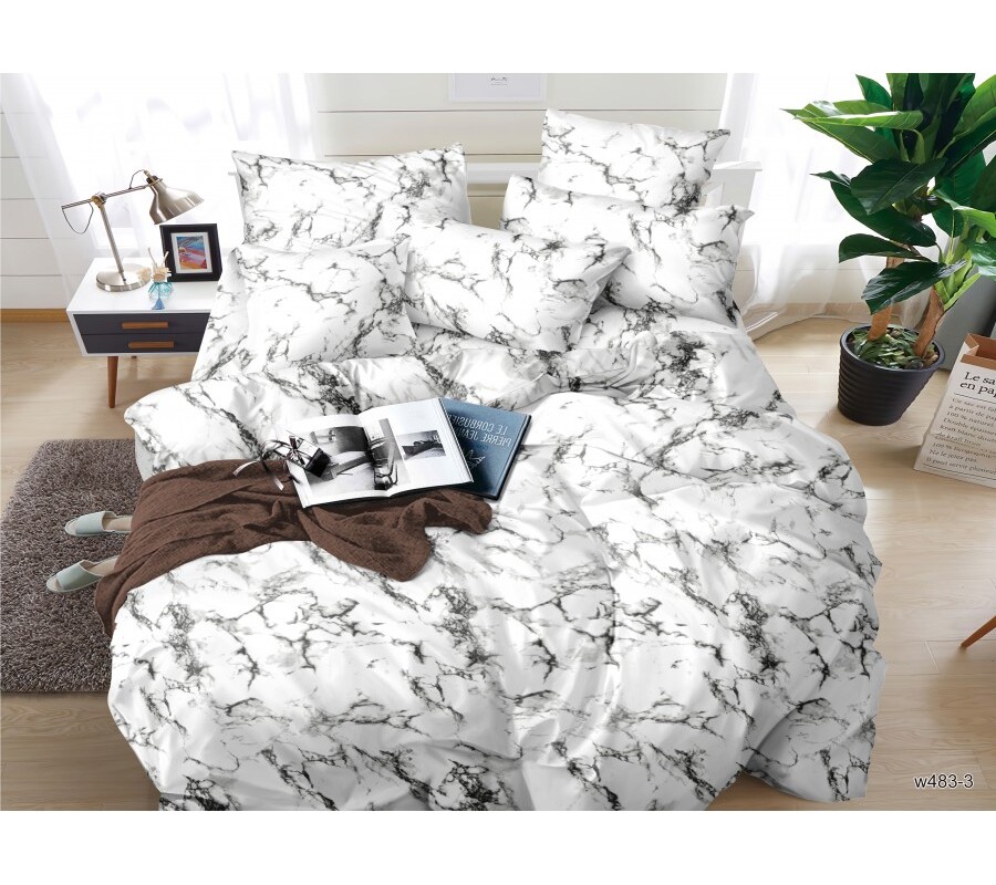 Комплект постельного белья "Белый мрамор" - современный дизайн, создающий уютную свежесть и комфорт в вашей спальне.